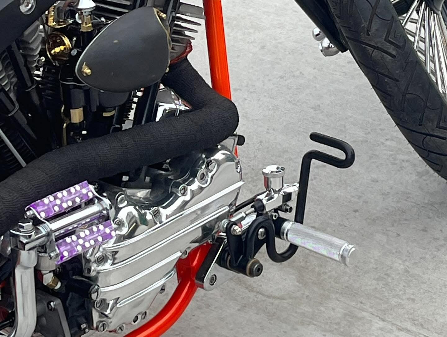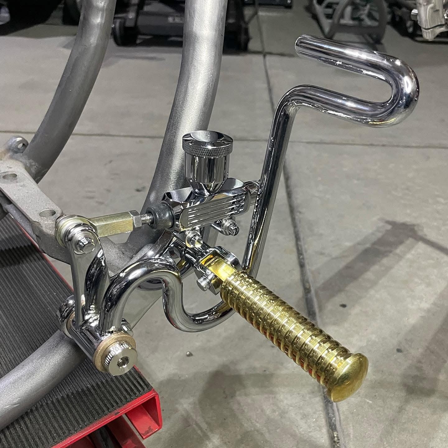 All controls come standard with knurled aluminum footpegs. You can upgrade to brass footpegs as well. And we’re always open to doing custom pegs!